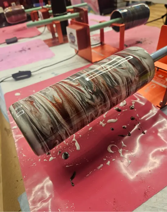 Resin tumblers combine creativity with function. You select your color palette, pour resin onto a stainless steel tumbler, and use swirling techniques to create patterns.
